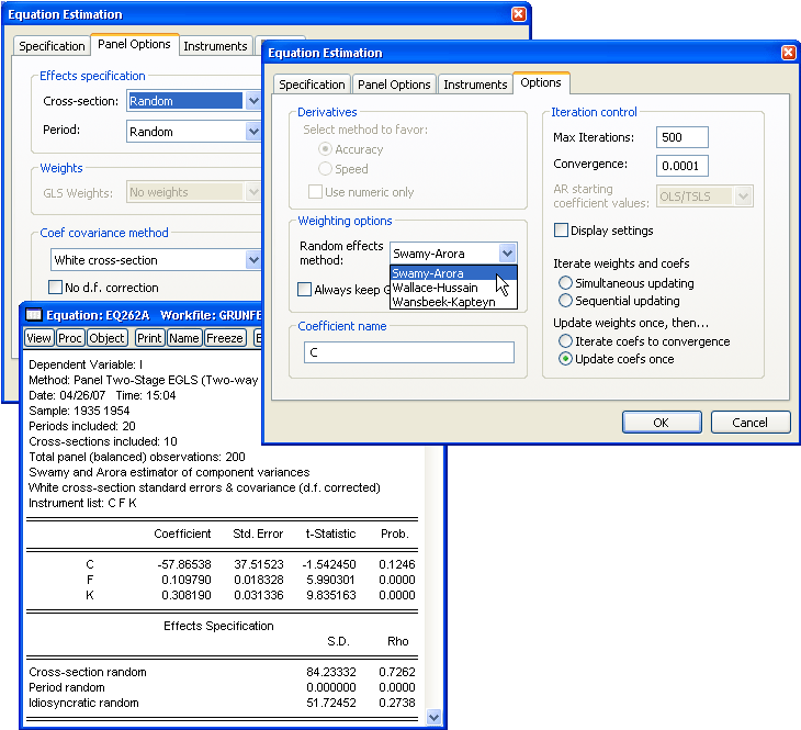 EViews´Â ÆÐ³Î µ¥ÀÌÅÍ ÃßÁ¤·®°ú ¿É¼ÇÀÇ ¹üÀ§¸¦ Á¦°øÇÕ´Ï´Ù.