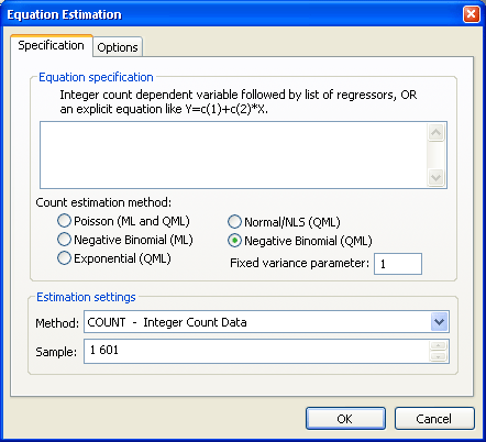 EViews´Â ML°ú QML Ä«¿îÆ® ¸ðÇüÀ» ÃßÁ¤ÇÕ´Ï´Ù.