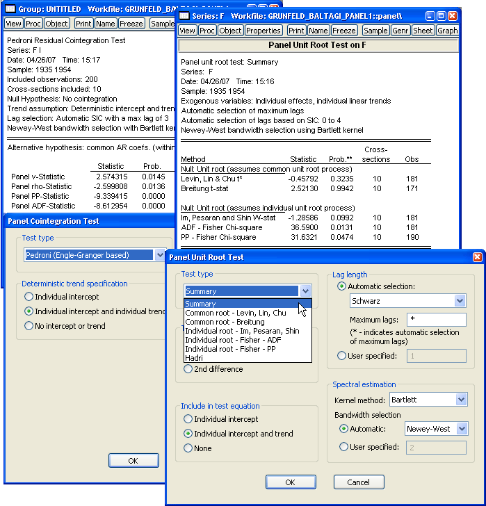 ±âº»ÀûÀÎ °æµµ µ¥ÀÌÅÍ ºÐ¼®Àº ±×·ì°ú, ±â°£ Åë°è, °ËÁ¤, ±×·¡ÇÁ¿¡¼­ºÎÅÍ Á¤¹ÐÇÑ ÆÐ³Î ´ÜÀ§±Ù(Levin-Lin-Chu, Breitung, Im-Pesaran-Shin, or Fisher)°ú °øÀûºÐ °ËÁø(Pedroni(2004), Pedroni(1999),and Kad, or Fisher-type test)±îÁö ºÐ¼®ÇÒ ¼ö ÀÖ½À´Ï´Ù.