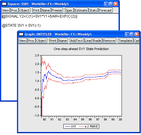 ½Ã°è¿­ ºÐ¼®À» À§ÇÏ¿© EViews´Â ARMA¿Í ARMAX ¸ðÇü, ±×¸®°í ±¤¹üÀ§ÀÇ ARCH ±Ô°ÝÀ» ÃßÁ¤ÇÕ´Ï´Ù. ±¸Á¶Àû ½Ã°è¿­ ¸ðÇüÀº »óÅ °ø°£ °´Ã¼¸¦ ÀÌ¿ëÇÏ¿© ÃßÁ¤ÇÒ ¼ö ÀÖ½À´Ï´Ù.